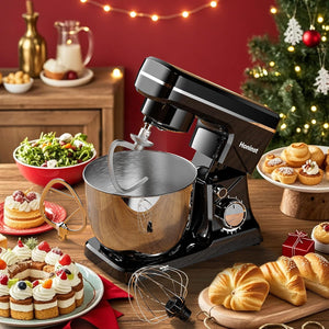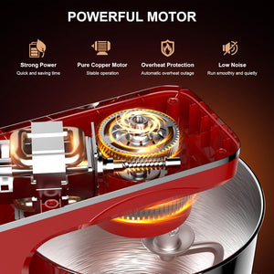 - Versatile Attachments Included: Our baking mixer comes with a dough hook, whisk, beater and a silicone spatula, enabling you to tackle a variety of recipes, from heavy dough to light meringues, ensuring professional-quality results every time