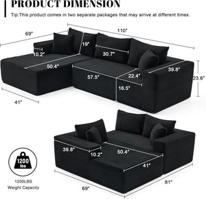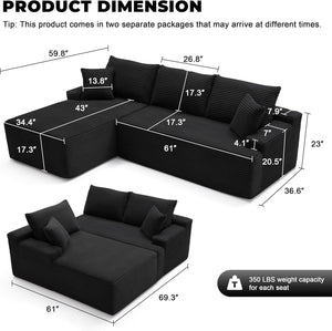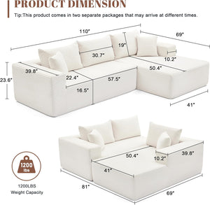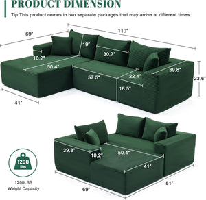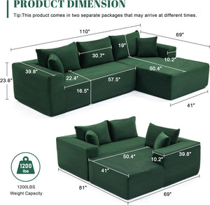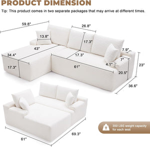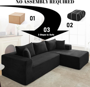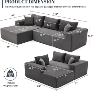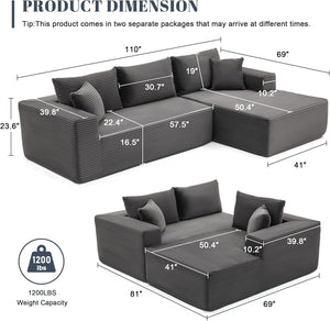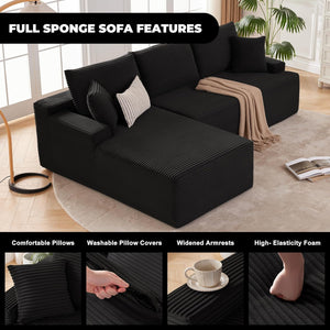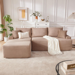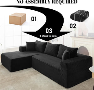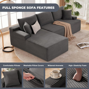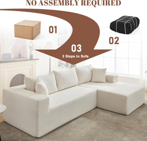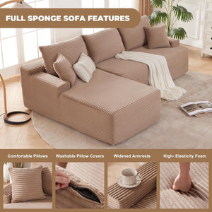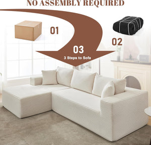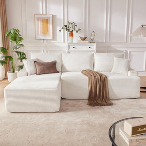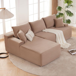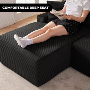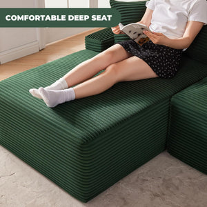 - Soft Corduroy Fabric: Upholstered in smooth, breathable corduroy, this Cloud Sectional Couch features an L-shaped chaise sofa design that blends comfort with quiet elegance. The fine ribbed texture adds visual warmth and provides a luxuriously soft, inviting seating experience