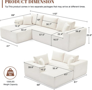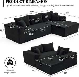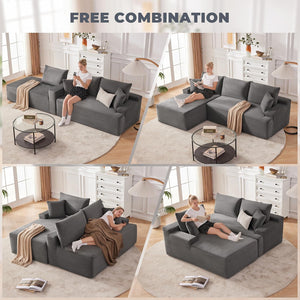 - Modular Flexibility: This modern modular sofa features a flexible design that can be freely rearranged into various configurations to fit your space. Whether you're furnishing a large open area or a compact apartment, our Boneless Sectional Couch effortlessly adapts to your changing needs and personal style