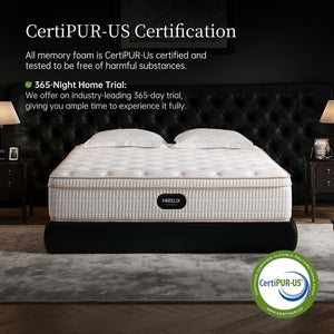 - Safe, Certified & Hassle-Free Warranty. Crafted with CertiPUR-US certified foams for safety and peace of mind. Backed by a 10-year warranty, this mattress arrives conveniently rolled in a box. Please allow 72 hours for full expansion and handle with care during unboxing.