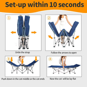 - 【Multiple Uses】 You can use the sleeping cot both outdoors and indoors. Such as camping, travel rest, office naps, and also the perfect temporary folding cot when guests visit your home.