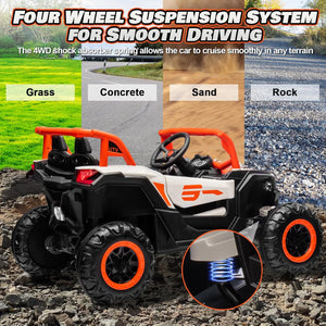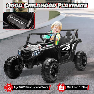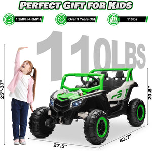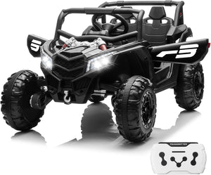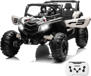 - Two Driving Mode - Dual Modes for Double the Fun! The 24V ride on electric UTV offer two driving modes: children can enjoy the excitement of driving by manipulating the steering wheel, fostering motor skills and hand-eye coordination. Parents can join the fun with the 2.4G remote control, ensure safe driving for children while sharing enjoyable parent-child time(Recommend the parent-operated remote control for kids aged 1.5 to 3 years old).