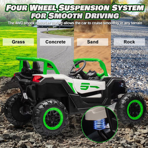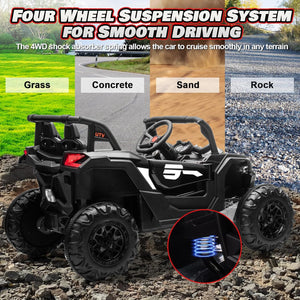 - Powerful and Stable Engines -- Powerful, stable, and low noise! This 24V kids UTV boasts four 150W motors capable of generating a whopping 600W of superpower. It can provide excellent power for climbing and bring kids enjoy several hours of driving happiness. This electric vehicle is equipped with a soft start mode, enable kids to cruise smoothly and enjoy fun at any time.