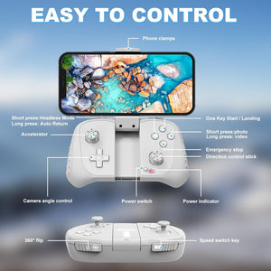 - 【Smart & Stable Flight Controls】Take off and land effortlessly with one-key control, while Altitude Hold ensures steady hovering for smooth shots. The upgraded Optical Flow Positioning enhances flight stability, and Headless Mode + Gravity Sensing make steering intuitive—simply tilt the controller to fly in any direction!