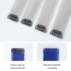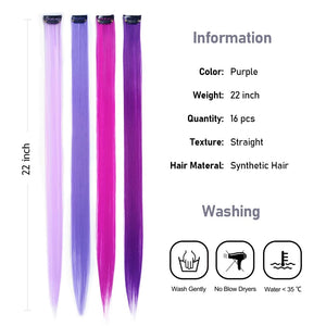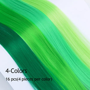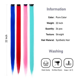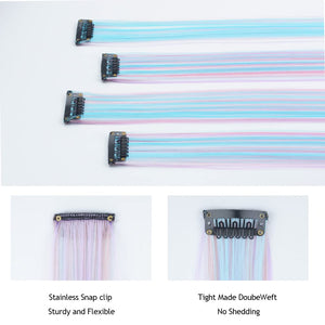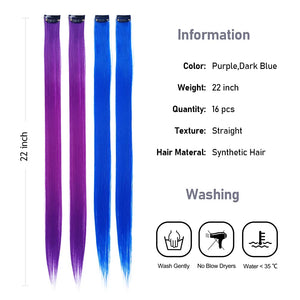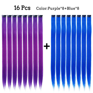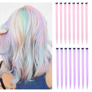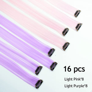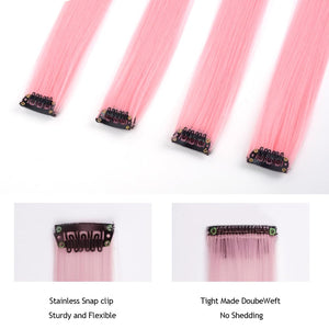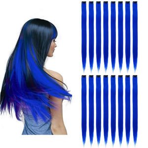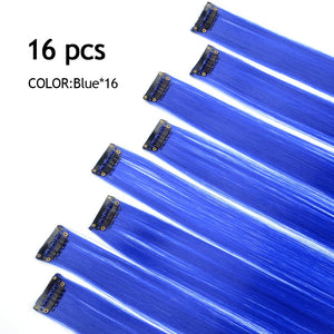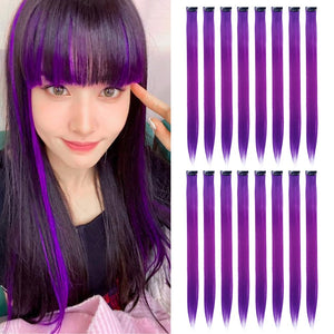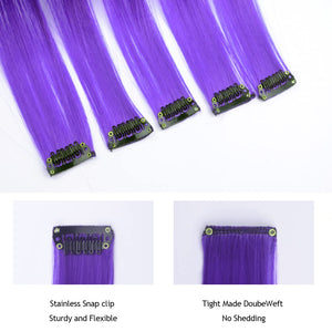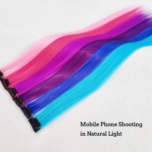 - The Best Choice: without any chemical dye to damage your hair & health; clip in hair extensions hairpieces come in various colors to match any kind of clothing; Great using for daily hair beauty; birthday party; theme party; Halloween costume
