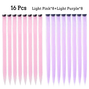 Colored Hair Extensions 20Inch Straight Color Clip in on Hair Extension Rainbow Party Highlights Synthetic Hairpiece