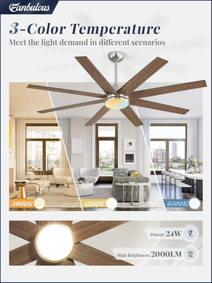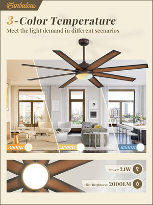 - 3 CCT Choices & Memory Functions: The high-brightness 2000 lumens LED light gives off plenty of light while saves energy! It offers 3 color temperature options: 3000K warm white, 4500K natural white & 6500K cool white. You are free to choose the lighting to create the ambiance you want. The black ceiling fans also features a memory function, when you turn off the light and Wait 10 Seconds to turn it back on, it can memory your last lighting setting