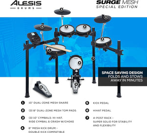 Alesis Drums Command Mesh SE Kit - Electric Drum Set with Quiet Dual Zone Mesh Pads, USB MIDI Connectivity and 600+ Electronic & Acoustic Drum Sounds