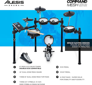| Item Type Name | Alesis Drums Command Mesh Kit - Electric Drum Set with Dual Zone Mesh Pads, USB MIDI Connectivity, 600+ Electronic & Acoustic Drum Kit Sounds |
