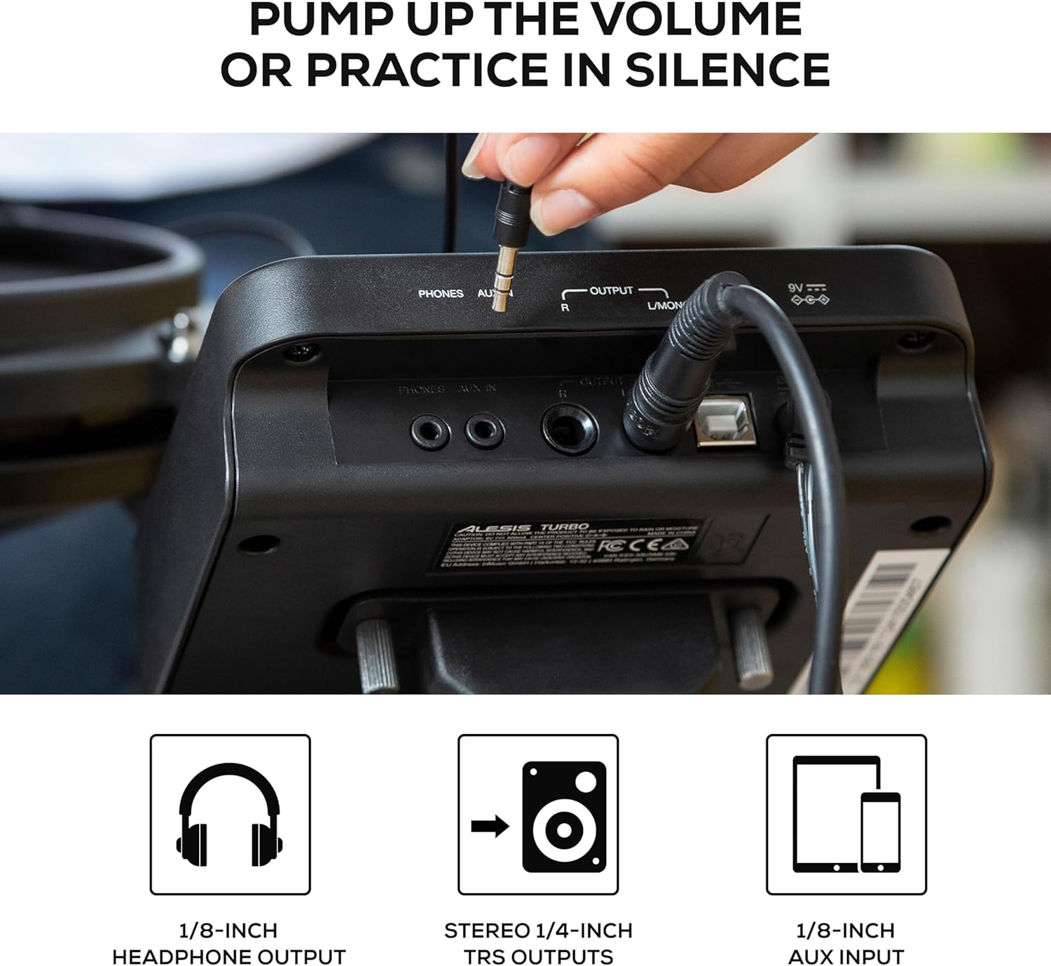 - Packed with Sounds - Turbo Drum Module with 10 ready-to-play classic and modern drum kits, 30 play-along tracks and 100 plus expertly curated sounds