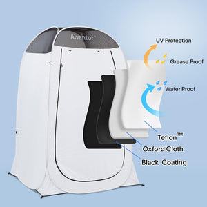 Alvantor Shower Tent Pop Up Changing Room Outdoor Shower Enclosure Pop Up Privacy Tent Toilet Tent Camping Dressing Portable Shelter Teflon Coating Fabric 4’x4’x7' Patent Pending, White