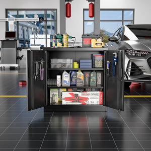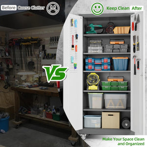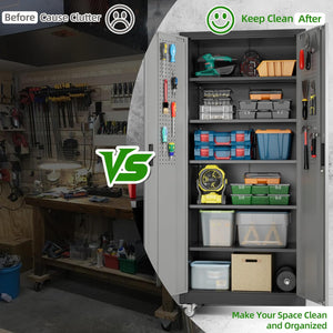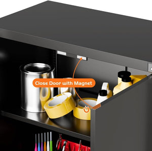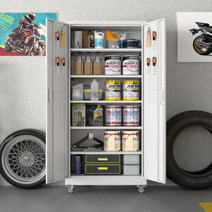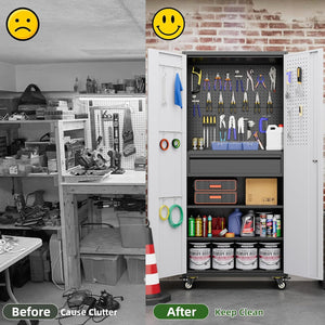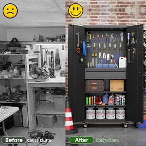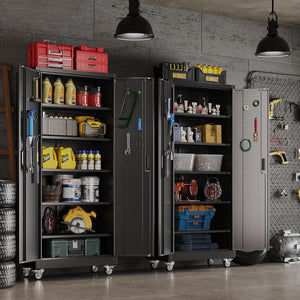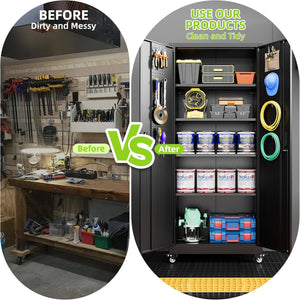 - 【Garage Storage Cabinet】Plenty of storage. "great garage cleanup".You can move them around as needed and the casters and wheels work great on all the different surfaces inyour garage. Extra storage strong and fit your needs, it is sufficient for garage use.