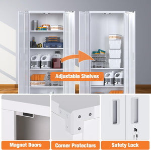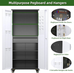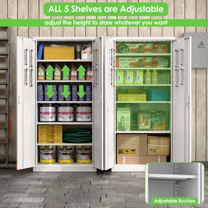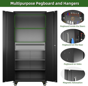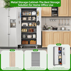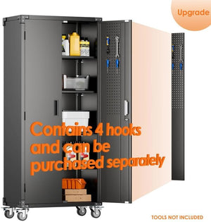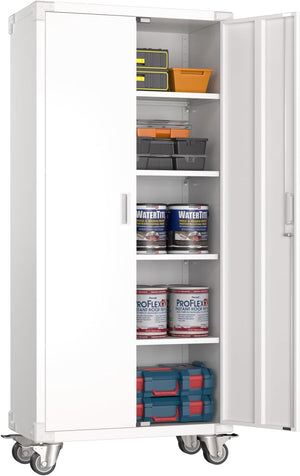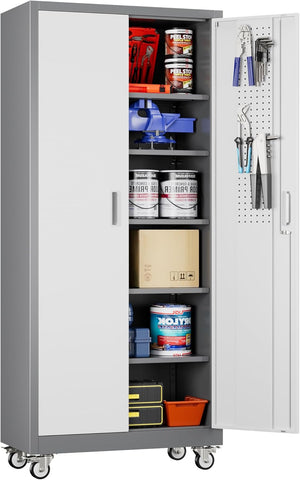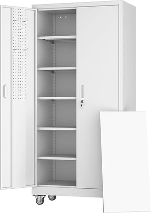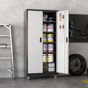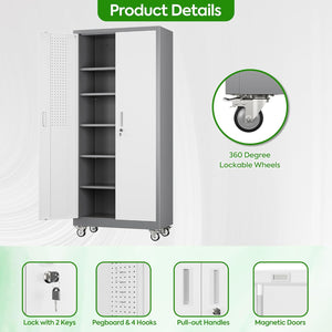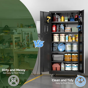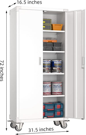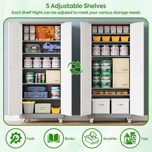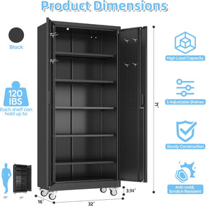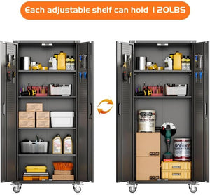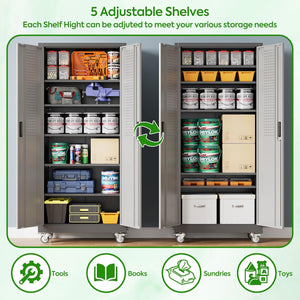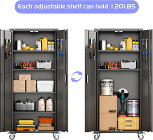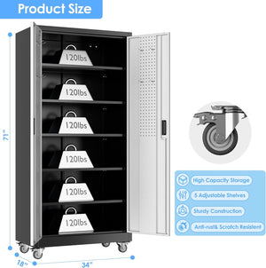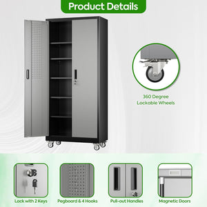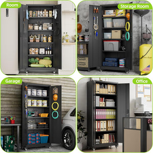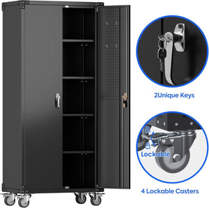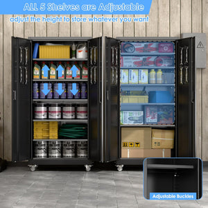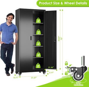 Aobabo 73''H Metal Garage Storage Cabinet with Wheels,Steel Cabinets with 2 Doors and 4 Adjustable Shelves for Home Office,Required Assembly,Black