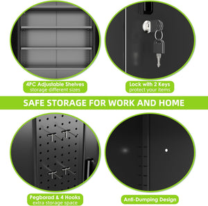 - 【Adjustable Shelves&Large Weight Capacity】The metal storage cabinet with wheels has 4 adjustable and removable shelves, which can offer you flexible space. Each shelf of the storage cabinet on wheels can hold up to 120lbs. you can add lighting by yourself on top of the cabinet if it was dark where you keep it.