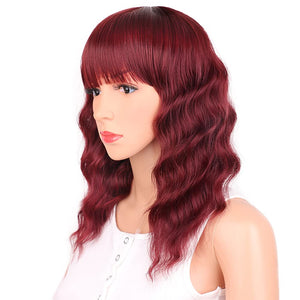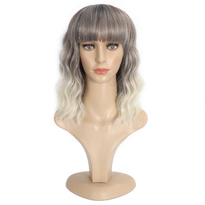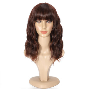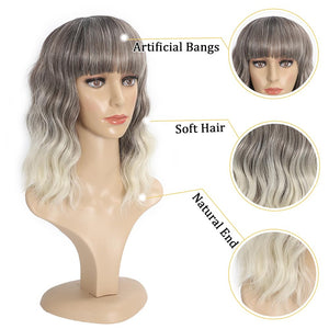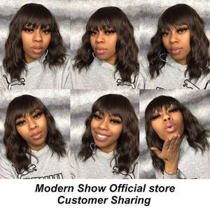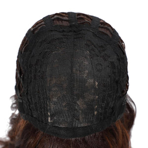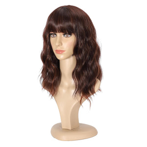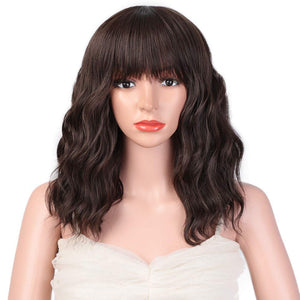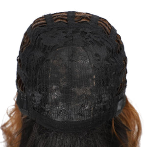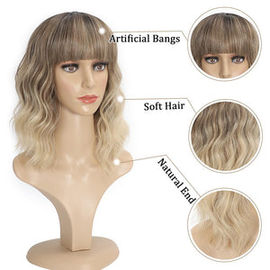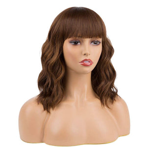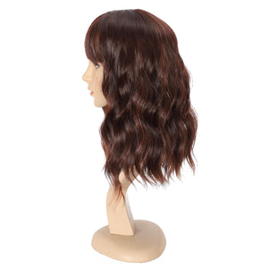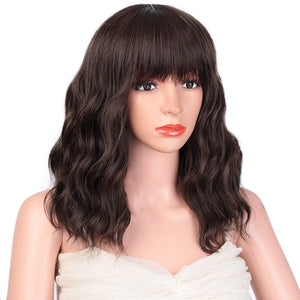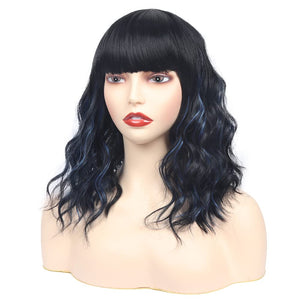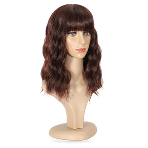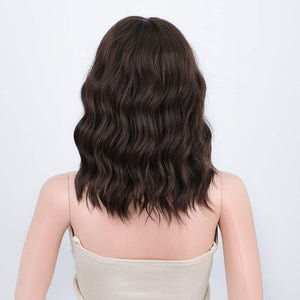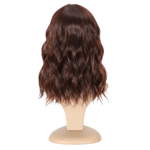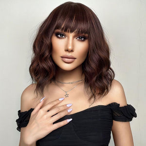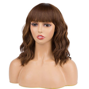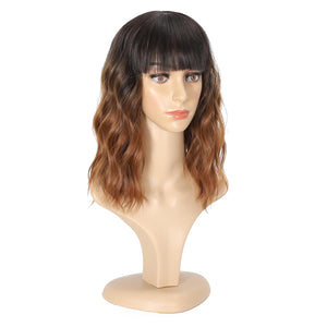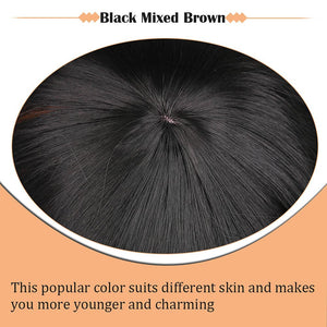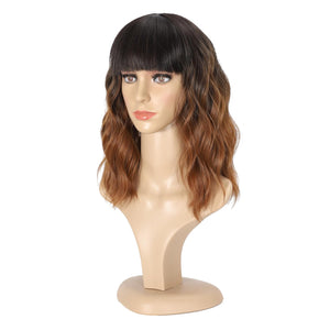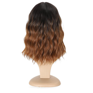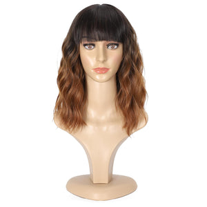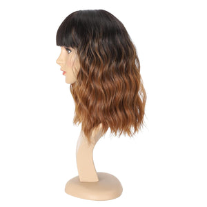 Black Mixed Brown Wig 14 Inch Short Wavy Hair Wigs Curly Bob Human Hair Wigs