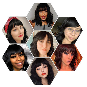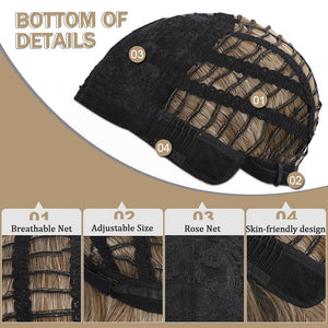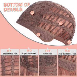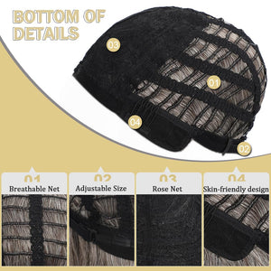 - Cap Size: This Bob wig bangs fit for most head sizes and shapes with elasticated breathable rose net and adjustable straps inside. You can loosen or tighten the wig to reach a most comfortable condition.