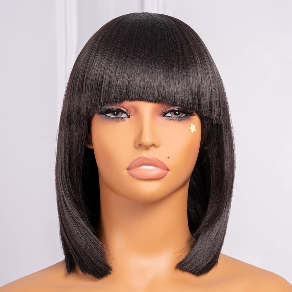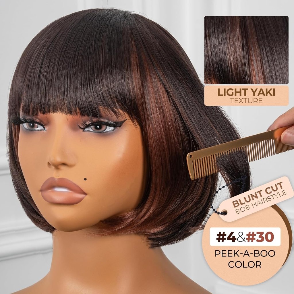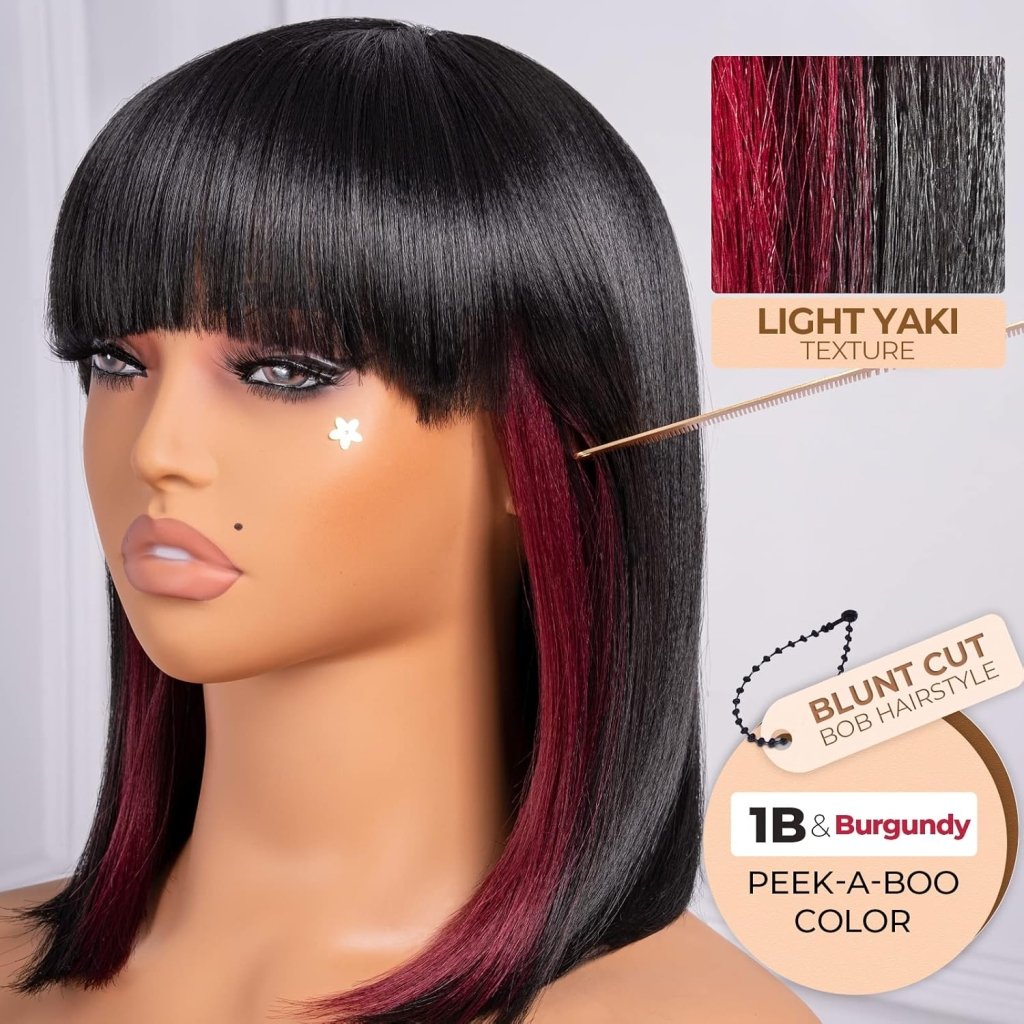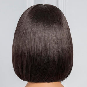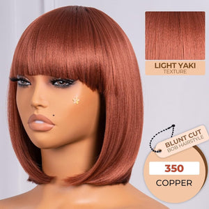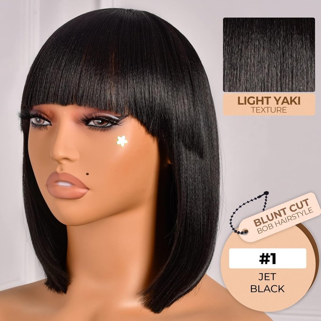 - LIGHT YAKI TEXTURE: Our short bob wigs with bangs are specially processed with light yaki texture so it looks and feels like real hair; super soft & light which makes it easy to brush through.