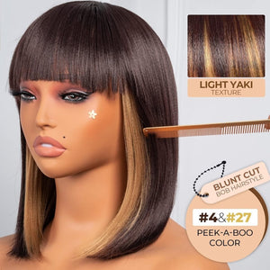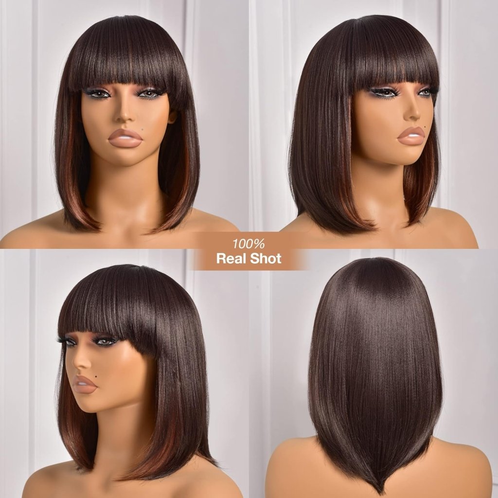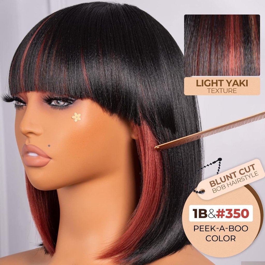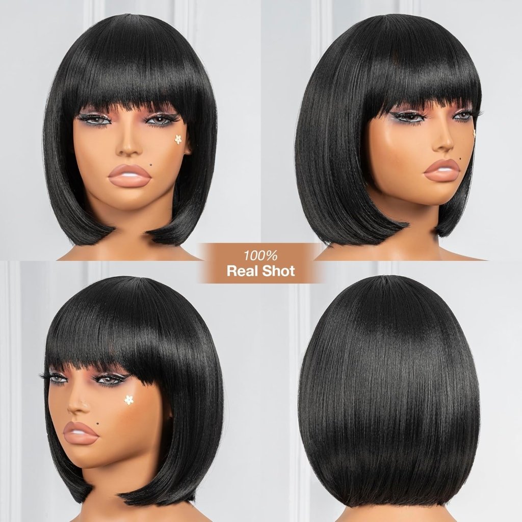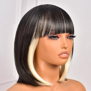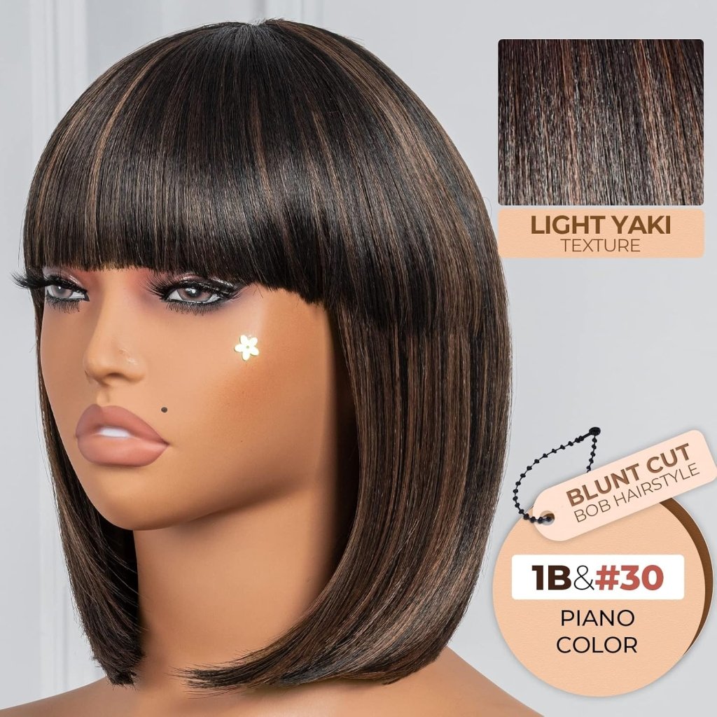 - LIGHT YAKI TEXTURE: Our short bob wigs with bangs are specially processed with light yaki texture so it looks and feels like real hair; super soft & light which makes it easy to brush through.