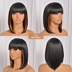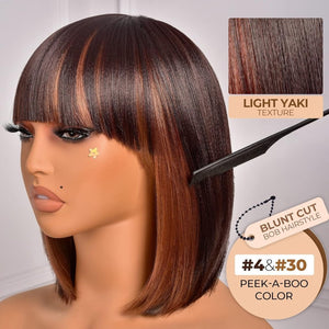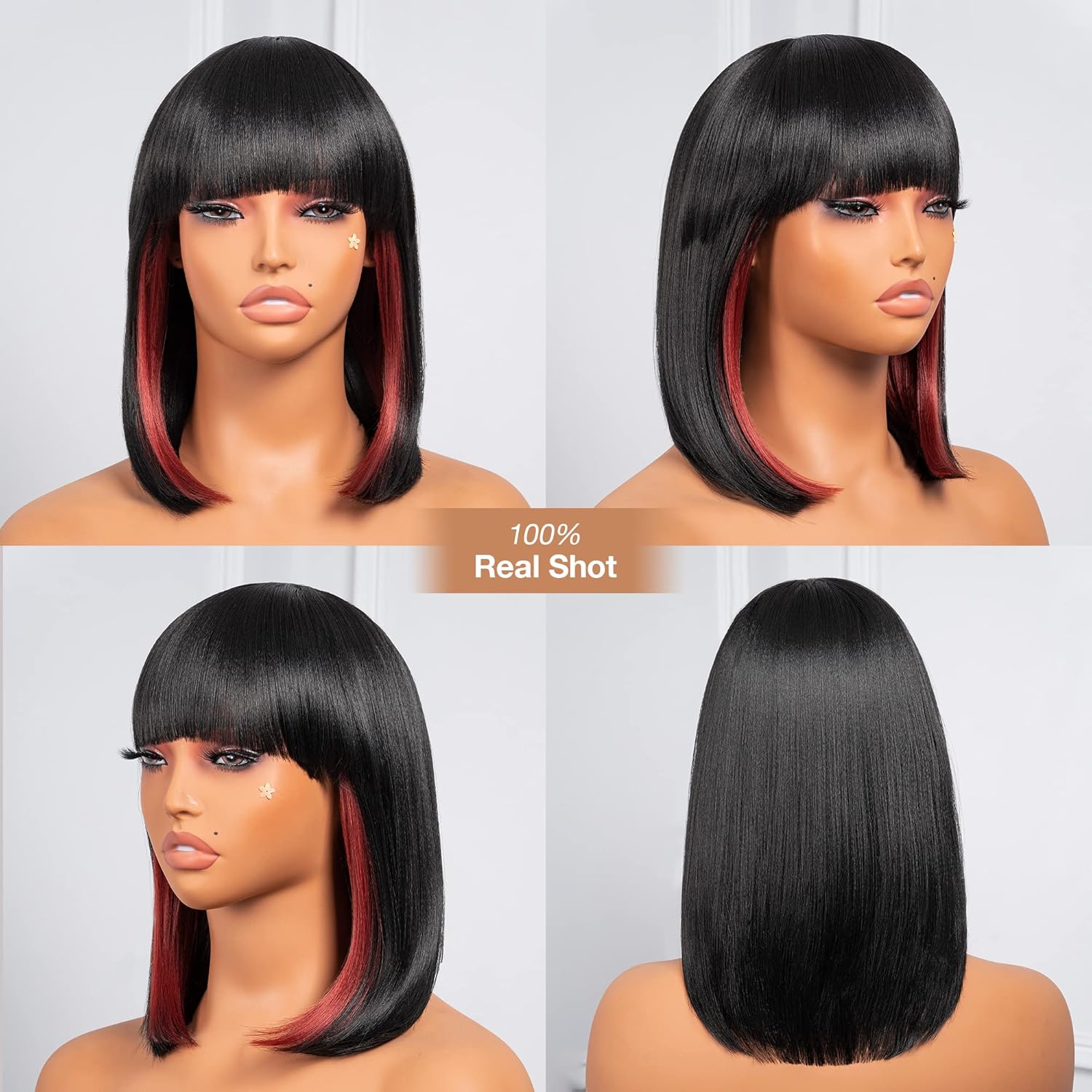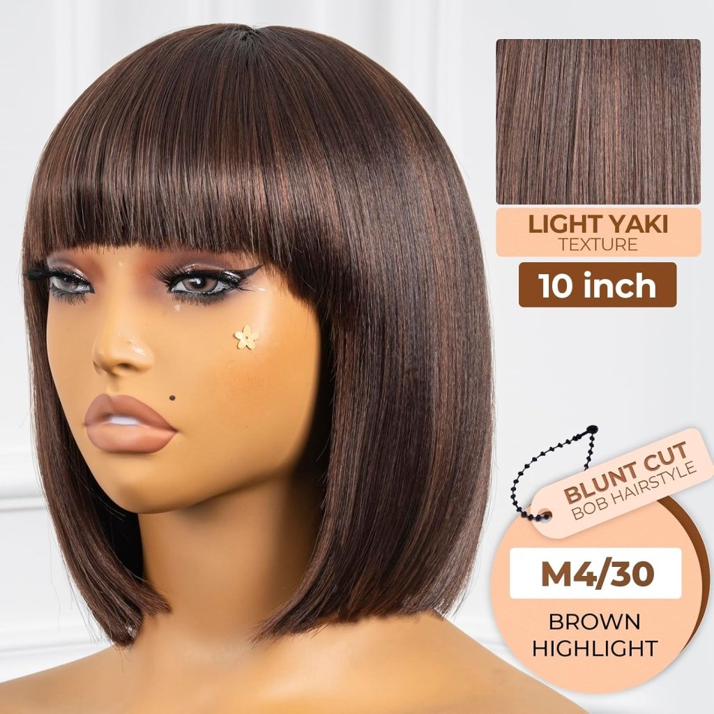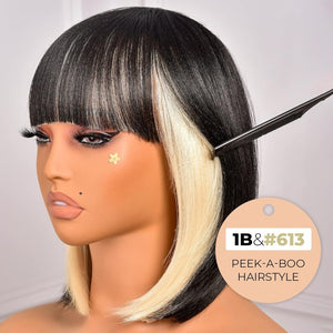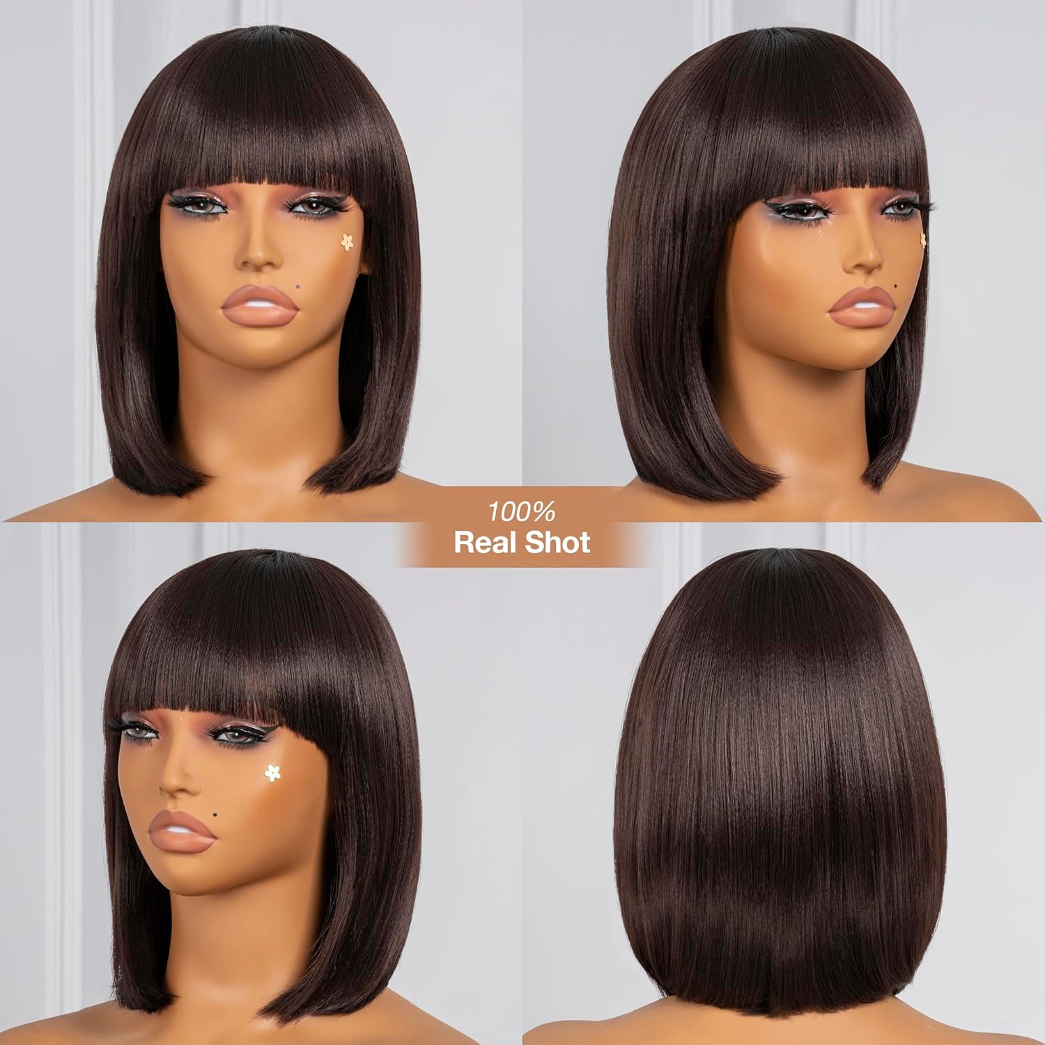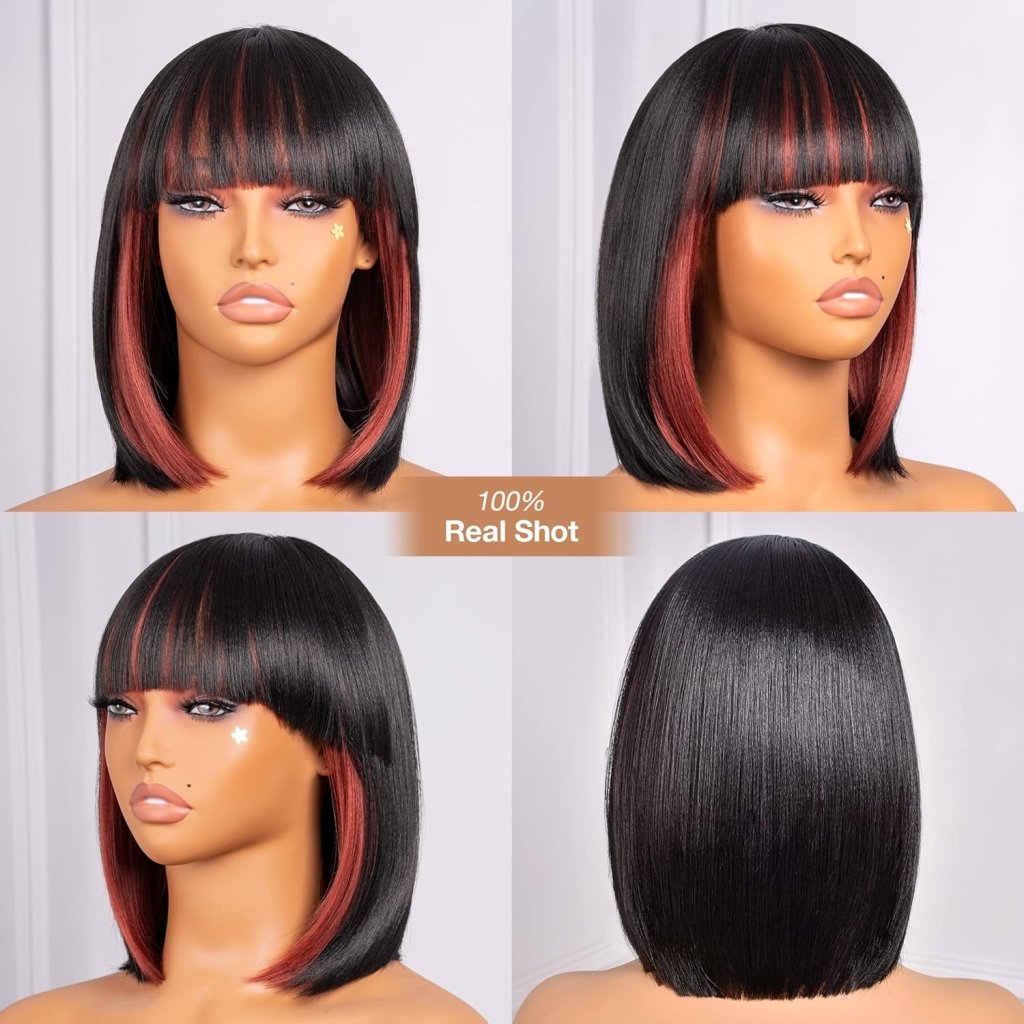 - LIGHT YAKI TEXTURE: Our short bob wigs with bangs are specially processed with light yaki texture so it looks and feels like real hair; super soft & light which makes it easy to brush through.