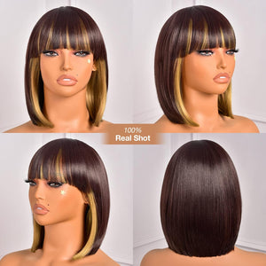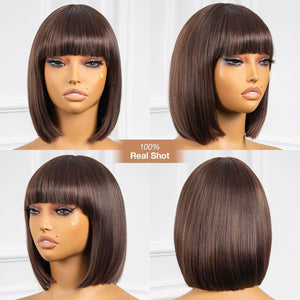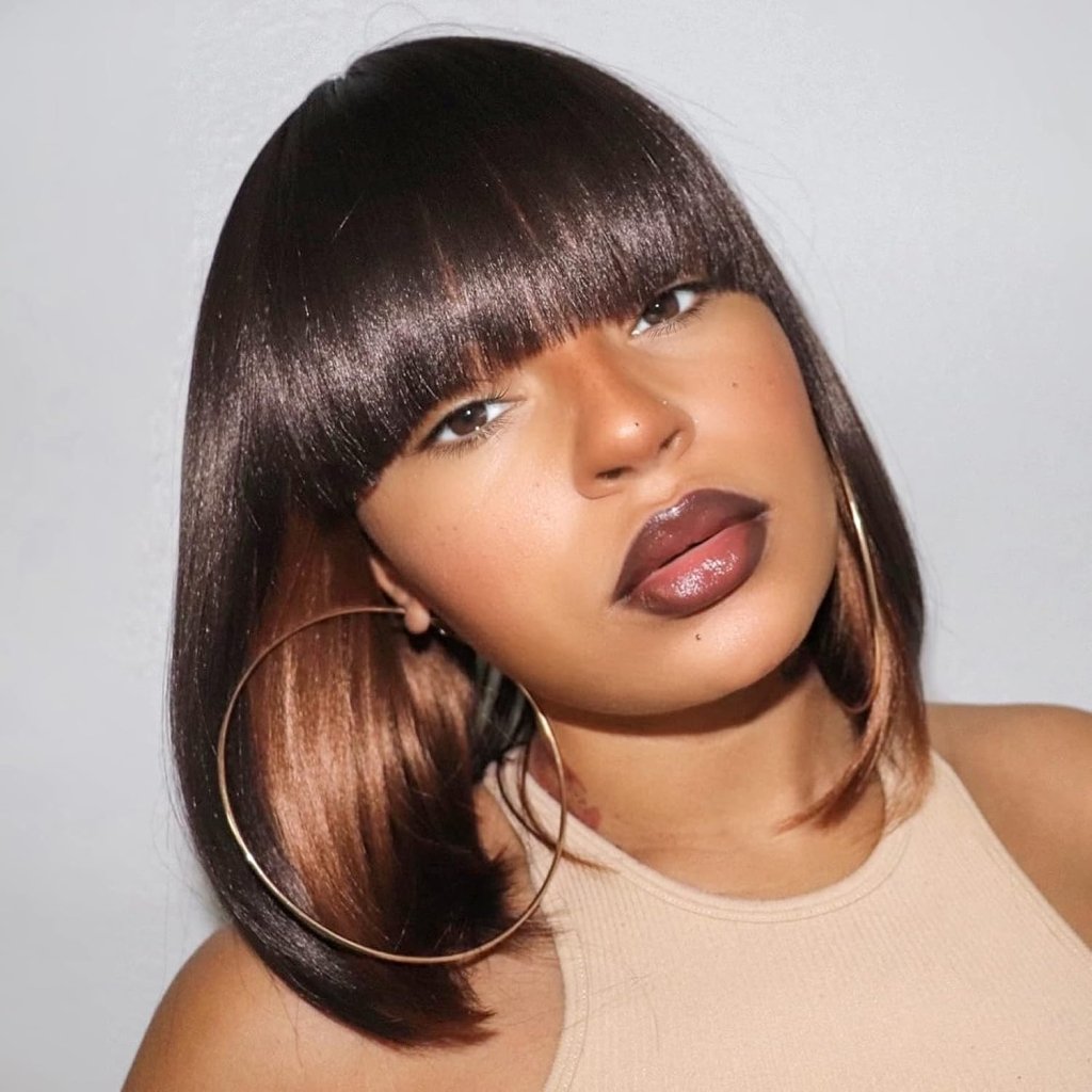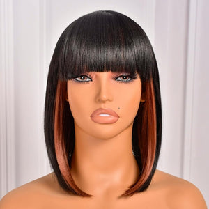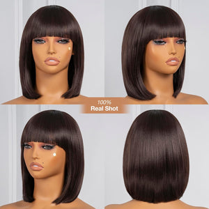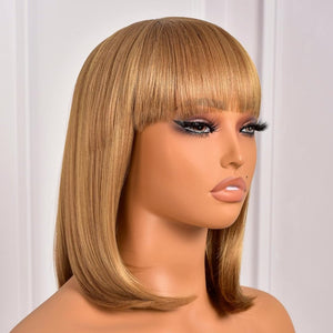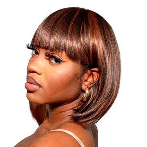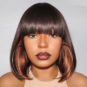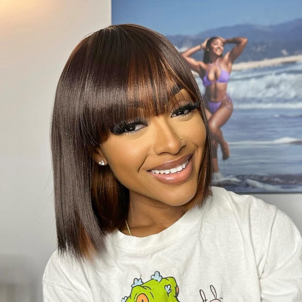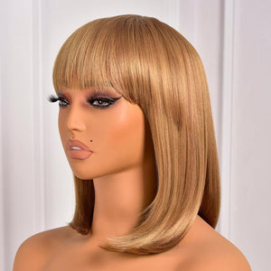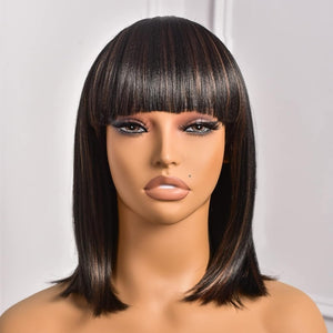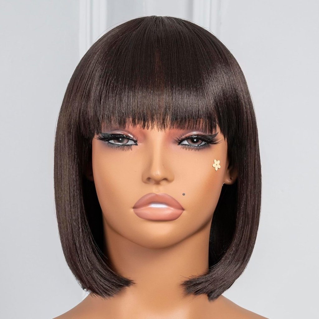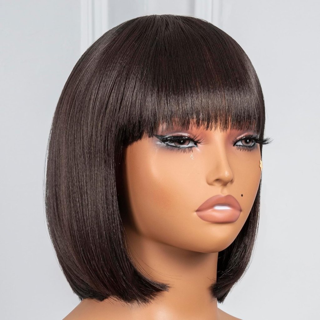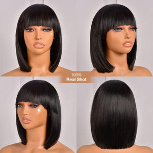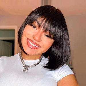Bob Wig With Bangs Short Bob Wig For Black Women Light Yaki Straight Human hair Wigs
