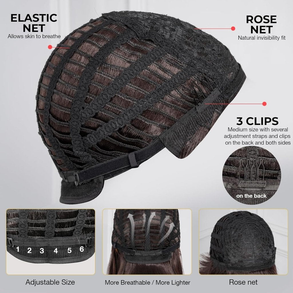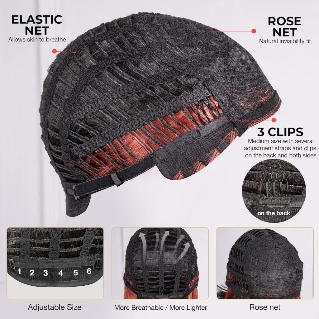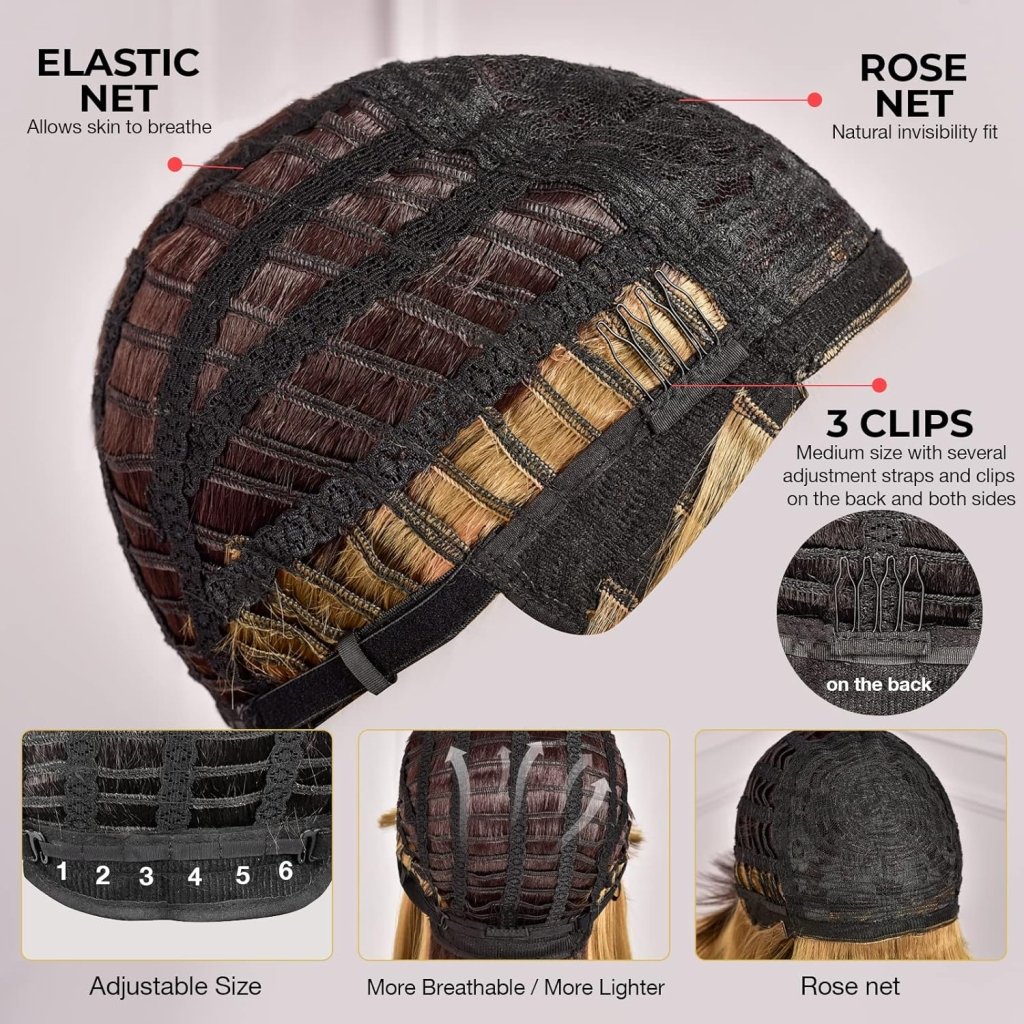 - WIG CARE: Gently shampoo & condition in cool temperature water; Place the bob wig with bangs on a mannequin head at night to keep the style and wig cap intact; Store in dry place when not in use.