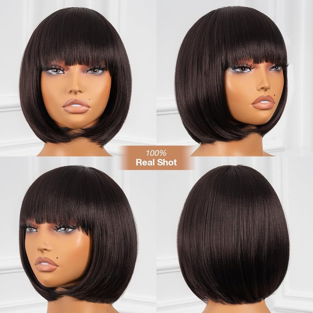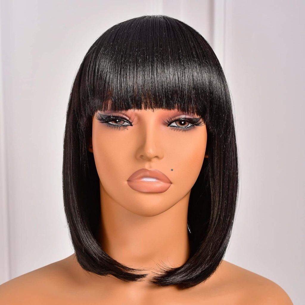 - EXQUISITE PACKAGE: To ensure the good shape of our bob wigs with bangs, we use an exquisite anti-pressure packing box for each our wig. You will get a short straight bob wig with bangs + a wig cap.