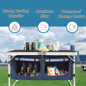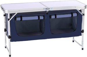 CampLand Outdoor Folding Table Aluminum Lightweight Height Adjustable with Storage Organizer for BBQ, Party, Camping