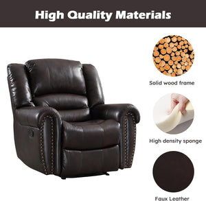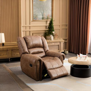 - ✿Breathable Leather Recliner: As the use of high-quality faux leather for upholstery material, caring for the chair is quite easy. With high-density foam and laminated veneer lumber (LVL) system to provide maximum comfort and stability, suitable for living room, bedroom and home theater room, and brass nails set off a classic and luxurious style of decoration.