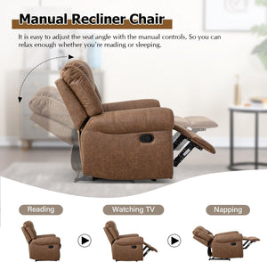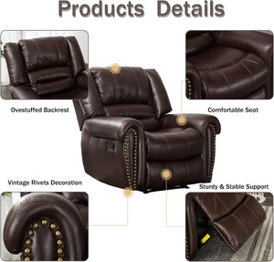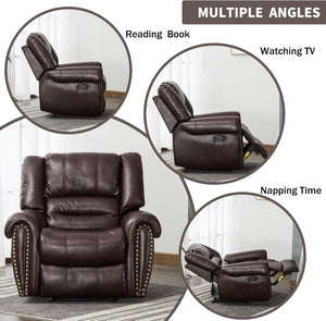 CANMOV Leather Recliner Chair, Classic and Traditional Manual Recliner Chair with Comfortable Arms and Back Single Sofa for Living Room, Nut Brown