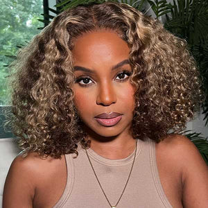 This human hair wig features a chic curly bob cut, offering a stylish and versatile look for any occasion. Made with high-quality human hair, it provides a natural and realistic appearance. Elevate your style with this beautiful wig.