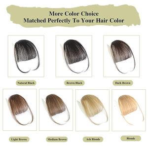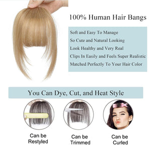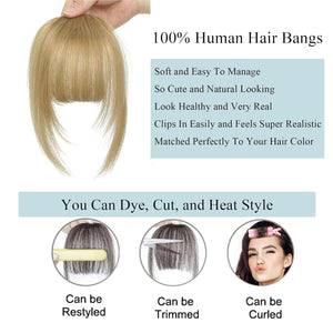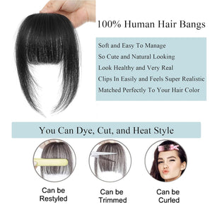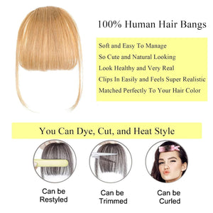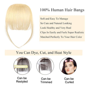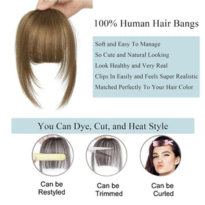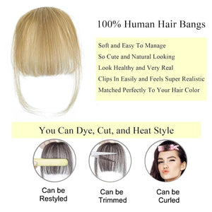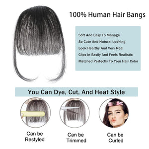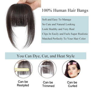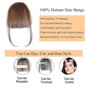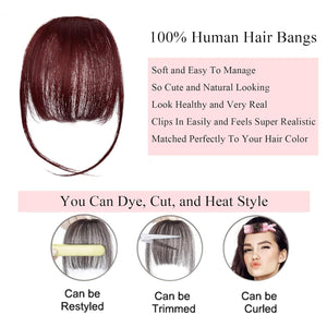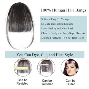 - Clip In Bangs Material: 100% Human Hair Clip On Bangs, Can Be Curled, Straightened, Or Dyed Into Other Colors And Styles As You Like. Tangle Free, Shedding Free, No Smell, Clean, Natural, Soft.