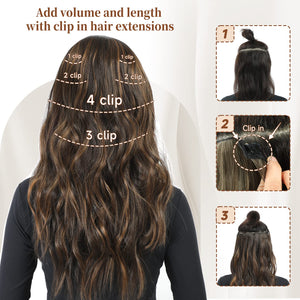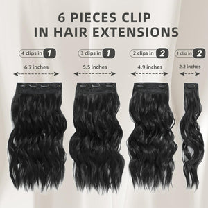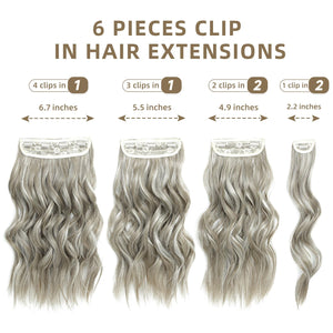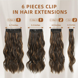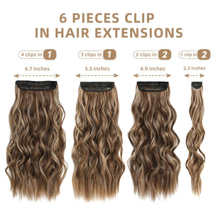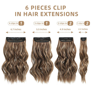 - 【More Hair Extensions】Fliace clip-in hair extensions are available in a set of 6 pcs hairpieces, 220g for hair with clips: 1 piece of 6.7 inches wide 4 clips in weft, 1 piece of 5.5 inches wide 3 clips in weft, 2 pieces of 4.9 inches wide 2 clips in wefts, 2 pieces of 2.2 inches wide, 1 clip in wefts.