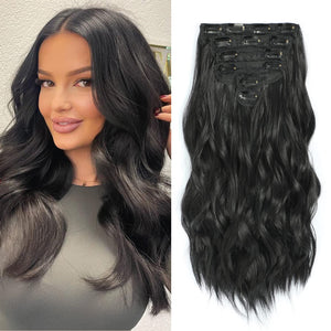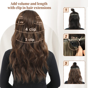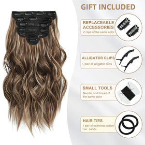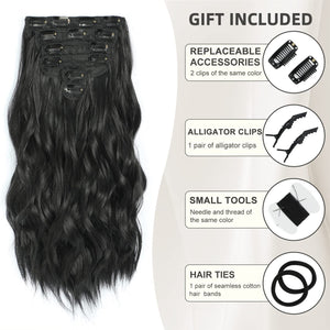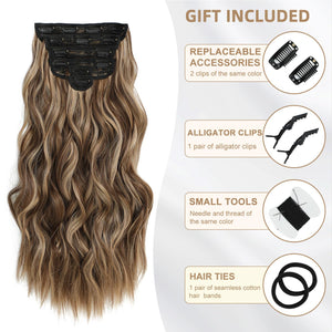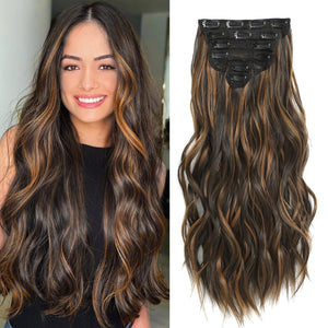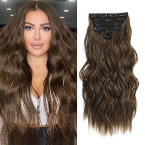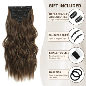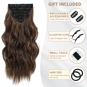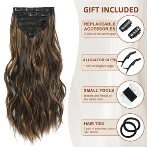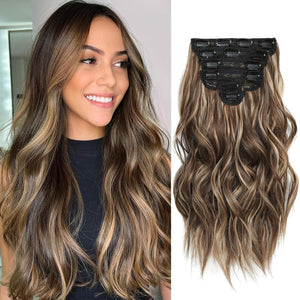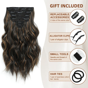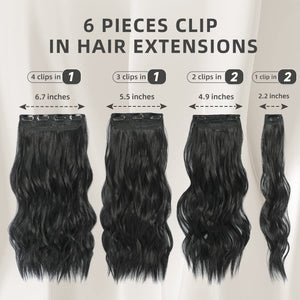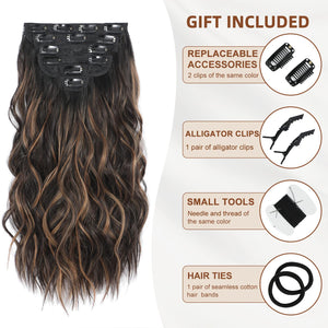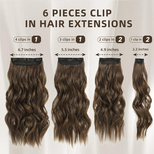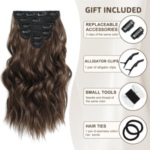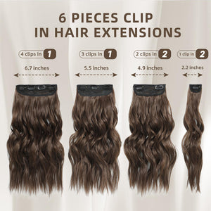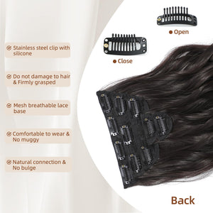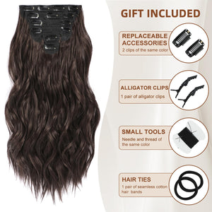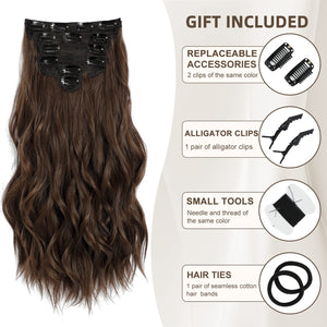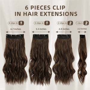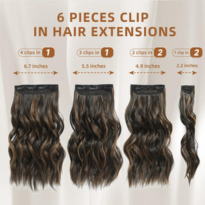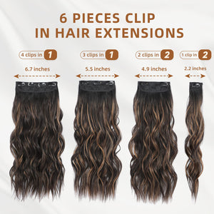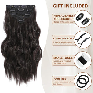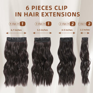 Clip in Hair Extensions 6 PCS Natural & Soft Hair Blends Well Hair wigs Dark Brown Long Wavy Hairpieces
