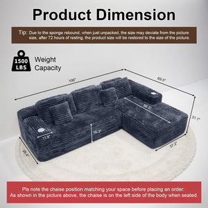 - 🚩🚩【As shown in the first image】When you're sitting on the couch, if the chaise (the extended lounging part) is on your right side, it's a right-arm chaise sofa; If it's on your left side, it's a left-arm chaise sofa. Note: After unpacking the compressed sofa from its sealed bag, let it rest for 48-72 hours (do not sit on it during this period). Wait until it fully expands and regains its plumpness (gentle patting can speed up this process) before installing the dual cup holders. Before installation, remove the black plastic cups from the exterior of the silver aluminum alloy cup holders.