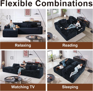 - 【Space Saving 4 in 1 Magic】Transform Your Space in Seconds. This minimalist modular sofa effortlessly reconfigures into 4 layouts: ❶ Chaise Lounge Layout - Stretch out solo; ❷ Conversation Corner - Ideal for socializing; ❸ Theater Row - Perfect for movie nights; ❹ Dual Zones - Create separate spaces. Fits 8x10ft+ rooms - Maximize small apartments or open lofts. No tools required!