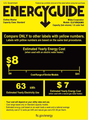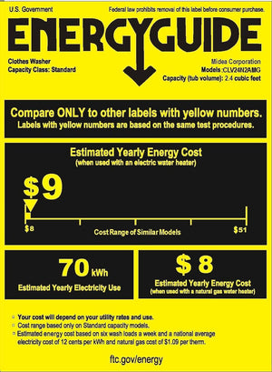 - This compact design washing machine has DOE (Department of Energy) certificate that clearly shows how much energy would be consumed on national average conditions. Saving as much as 87.5% energy consumption comparing to similar models, it equips with a powerful and durable motor, up to 840RPM spin speed but quiet when running.
