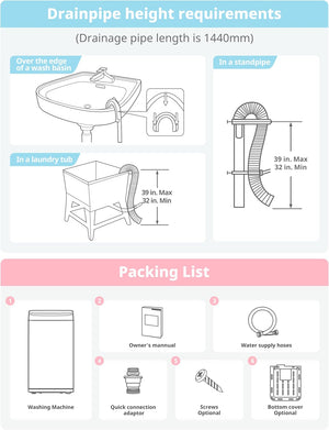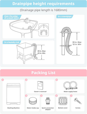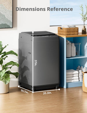 - This top load compact washing machine with only 18.1 inches in width, 17.7 inches in-depth, and 31.5 inches in height, this portable washer is able to be stored easily. You can store it in your cabinet, RV, dorm, or even bathtub! Even better, it comes with wheels and handles for easy movement. It is a perfect choice for small households with limited space and minimal optimal.