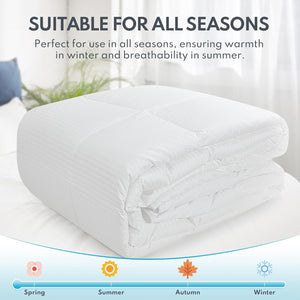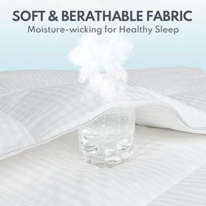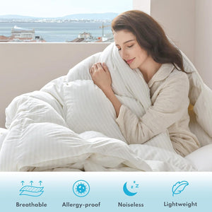 - Soft & Noise-Free Fabric: The inner layer of comforter is 100% cotton, which prevents the down fiber from shifting, while the outer layer is a polyester-cotton blend, offering better down fiber-proof performance, excellent moisture absorption, breathability, anti-static, and ultra-quiet, eliminating rustling sounds for undisturbed sleep.