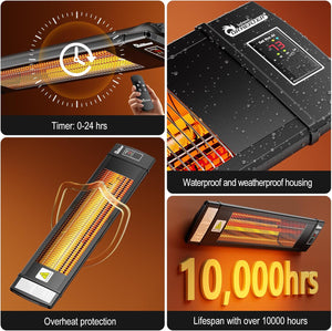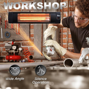- WATER RESISTANCE IPX5 - Indoor and outdoor rated heater, IP55. Instantly warm up the area with clean and odorless infrared heat, ideal for greenhouse heating, shed, store room, garage, milk house, grow tent.