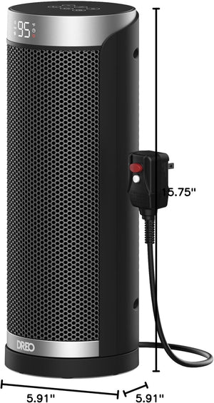 - Usage Comfort: The touchscreen is placed on top of the heater for easier reach, and the remote provides full access from up to 26 feet away. The 16-inch compact design makes our space heater a real space saver that is easy to move around with its hidden handle. Cord Lenth: 6 ft / 1.8 m