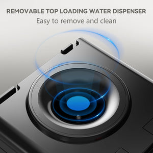 - This top loading dispenser for 3 or 5 gallon water bottles makes, it easy to check the status of the amount of water remaining in the bottled water bucket, and the top lid can be removed for cleaning.