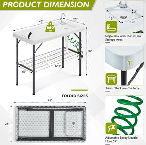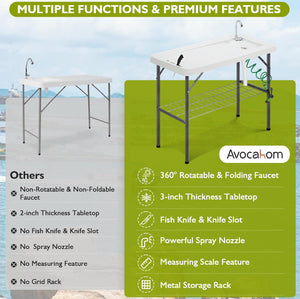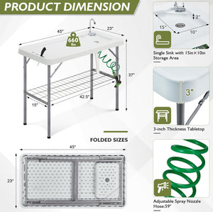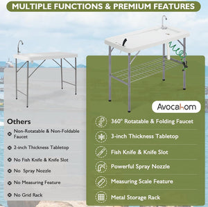 - Multiple Usage:Camping table with sink is perfect for picnic, camping, fishing and almost any kind of outdoor activity with family and friends. More importantly, this fish cleaning table can be widely used for cleaning different meats, fish, fruits and vegetables. Besides, our fish table is ideal for sellers to process and clean fish or meats.