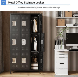 - 【Reinforced Steel Construction】Crafted from cold-rolled steel plates, these metal lockers with doors offer a reinforced structure for exceptional sturdiness. The heavy-duty electrostatic powder coating is eco-friendly, resistant to fading, damp-proof, and rust, ensuring long-lasting strength in offices, gyms, or warehouses.