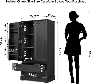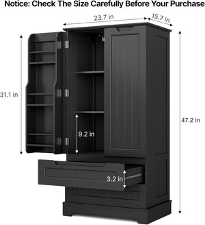 - Compact Storage Solution for Tight Spaces: Please double-check the dimensions before you buy! This small kitchen pantry cabinet features 2 narrow drawers, 2 interior shelves, and 6 side door shelves, providing plenty of storage without taking up much space. It measures 24" wide and 16" deep, making it ideal for small areas, including apartments