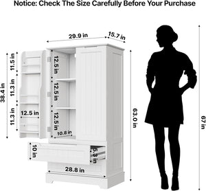 Gizoon Kitchen Pantry Storage Cabinet with Drawers Freestanding Bathroom Storage Cabinets with Doors and Shelves, 47" Small Food Pantry Cabinet for Dining Room Craft Room, White