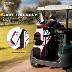 - Versatile Segmentation: The UNIHIMAL Golf Cart Bag comes with 15 separate compartments , effortlessly organizing and safeguarding your golf clubs. This ensures easy access while preventing collision damage