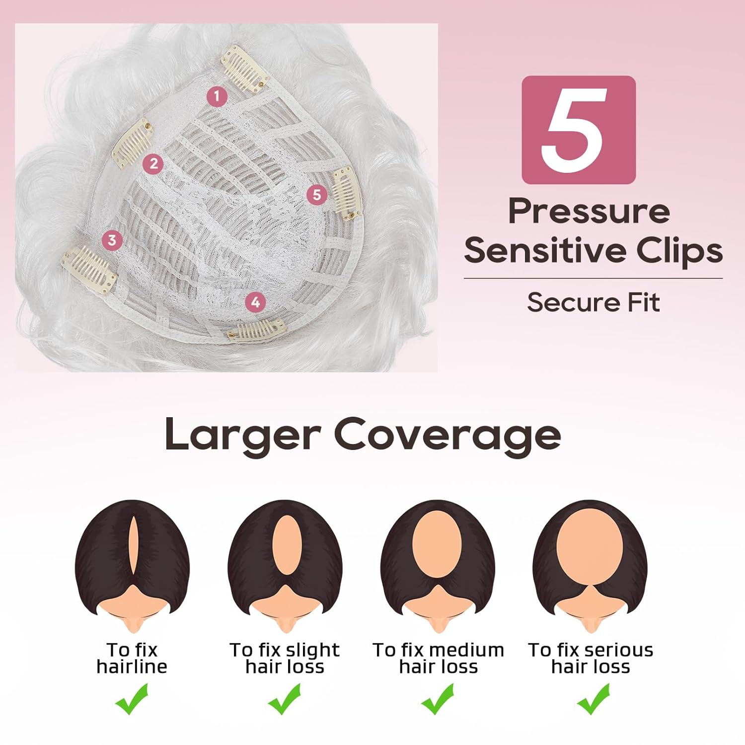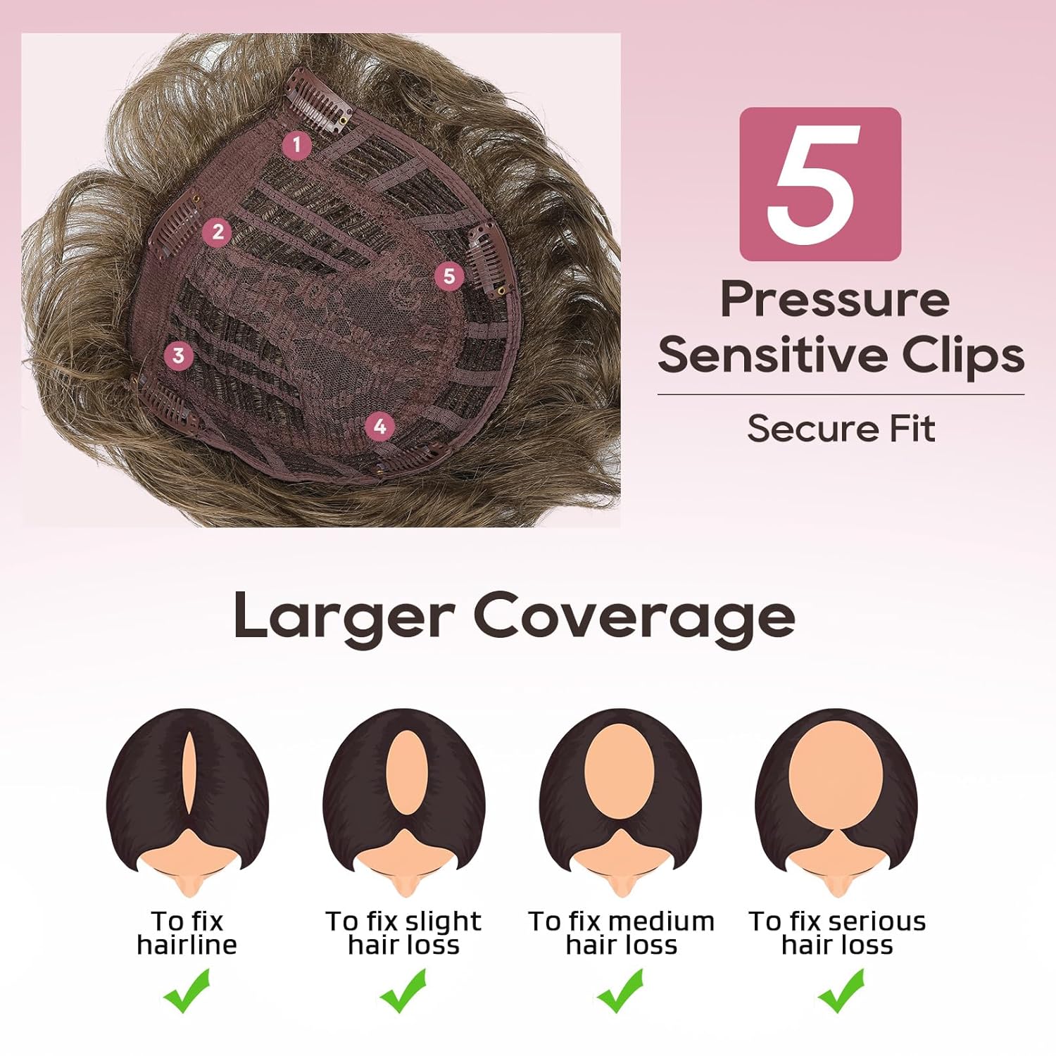 - Natural and Lightweight: Crafted from 100% Human Hair fibers weighing just 1.5 oz/43 g, this feather-light topper mimics the movement and feel of real human hair, ensuring a natural-looking and comfortable wear that won't be detected