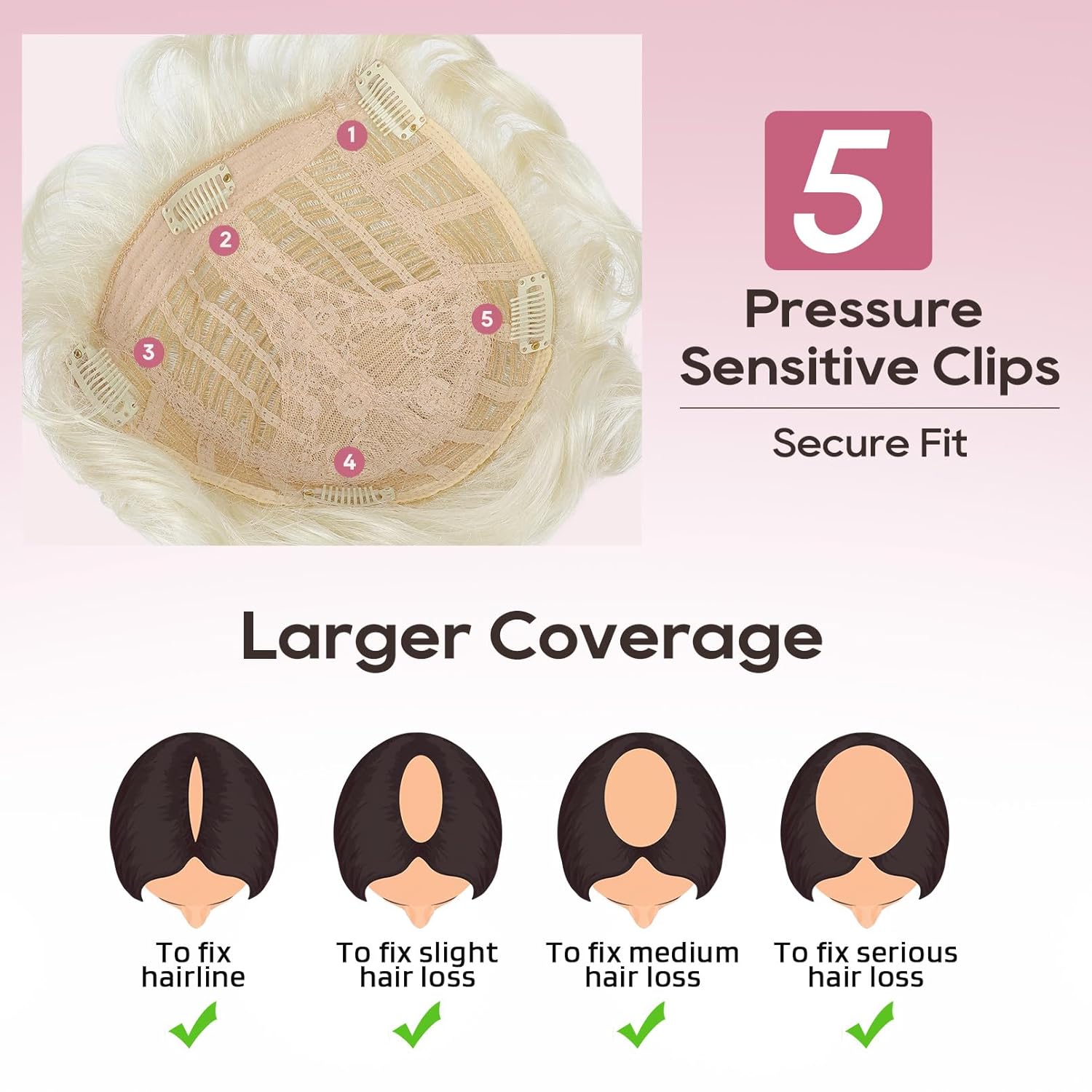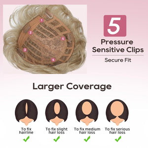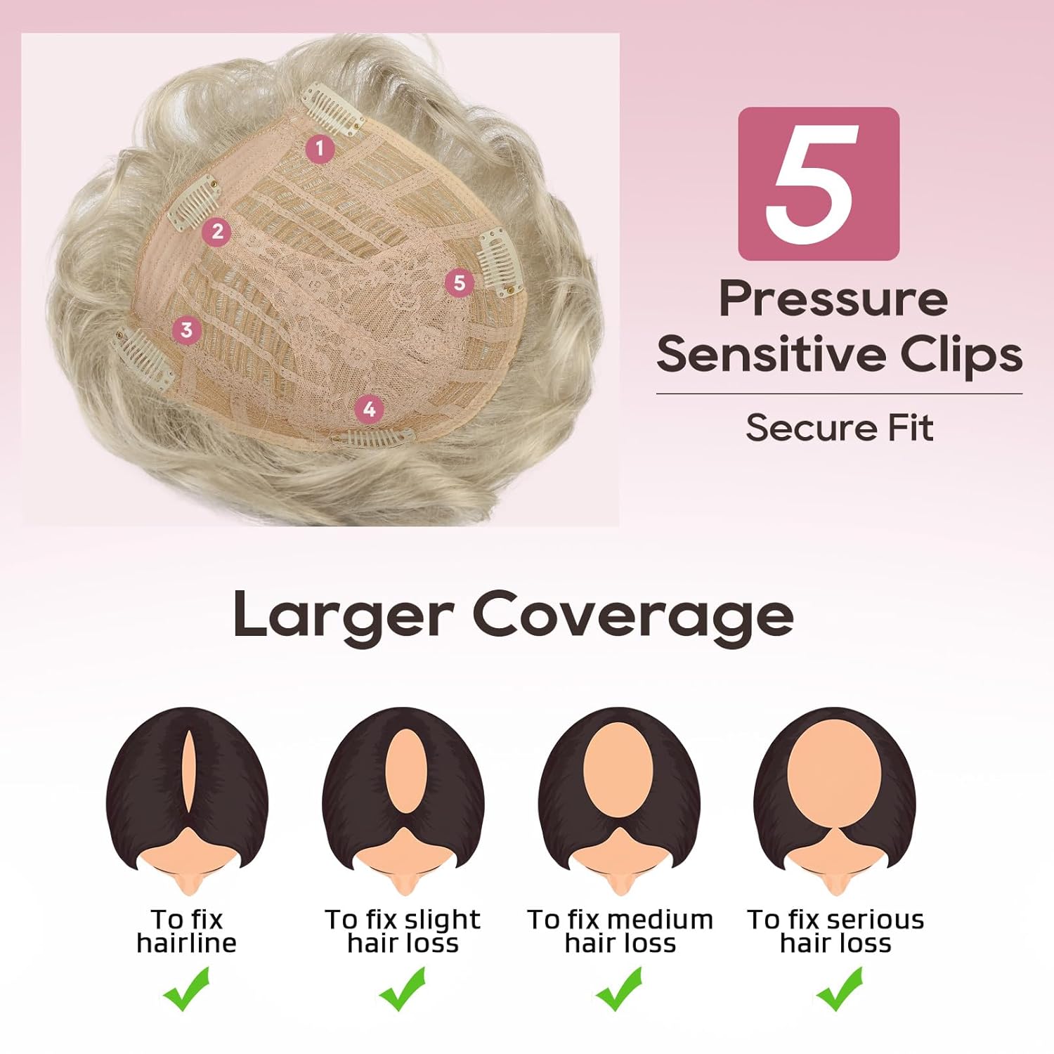 - Seamless Integration: This ash blonde hair topper seamlessly blends its natural-looking layers with your own hair, providing effortless coverage and reviving a healthy, voluminous appearance for those experiencing thinning hair or hair loss