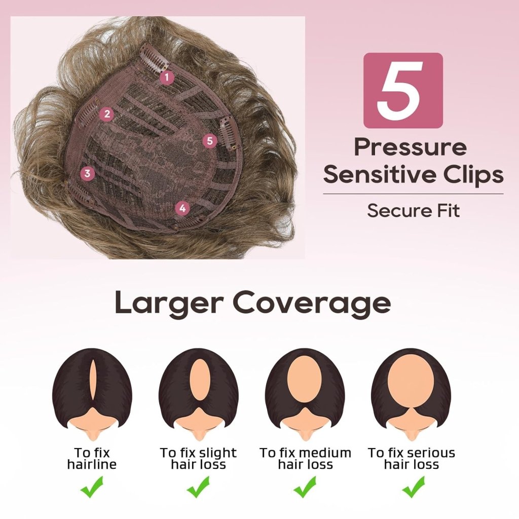 - Secure and Breathable: With 5 pressure-sensitive clips for effortless application and removal, and an open-wefted cap design for a light, cool, and breathable feel, you'll forget you're wearing this secure and comfortable topper
