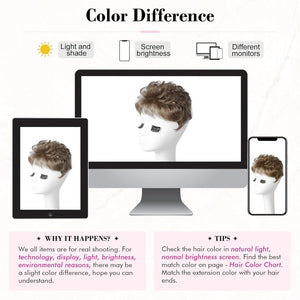 - Color Difference:WHY IT HAPPENS? We all items are for real shooting. For technology, display light,brightness, environmental reasons, there might be a slight color difference, hope you can understand. HOW TO MATCH THE COLOR? Check the hair color in natural light, normal brightness screen. Match the extension color with your hair ends